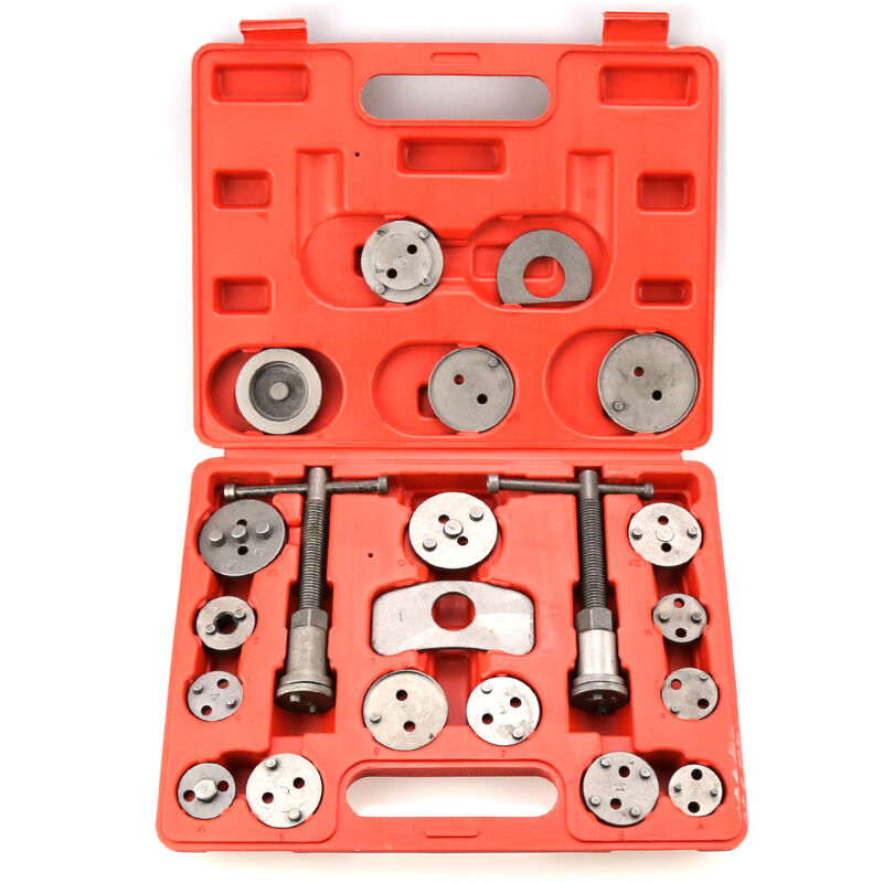 Descrizione prodotto: - Il set spinge il pistone della pinza, il kit di utensili da 21 pcs è molto potente e pratico - Spingere indietro il pistone del freno. Facile da usare, il suo utilizzo consente di risparmiare tempo - Sostituire il pad senza rischio di danneggiare il soffietto. - Le viti "svolta a sinistra" e "svolta a destra" sono adatte per veicoli con pistoni pinza - Dovrebbero essere girati in direzioni diverse per respingerli. 17 adattatori inclusi - Può essere utilizzato per qualsiasi tipo di auto