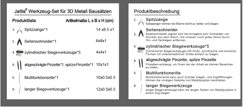 Funzioni multiple: questo è uno strumento indispensabile per la costruzione di kit in metallo 3D. Può essere utilizzato più facilmente per piegare il bordo delle parti metalliche, piegare o ruotare le linguette di parti metalliche e creare forme cilindriche e coniche. Le tronchesi laterali sono ideali per tagliare pezzi dalla lamiera. Non è necessario rimuovere ogni pezzo piegando avanti e indietro. Le pinze a becco lungo possono contenere e piegare facilmente le lamiere.