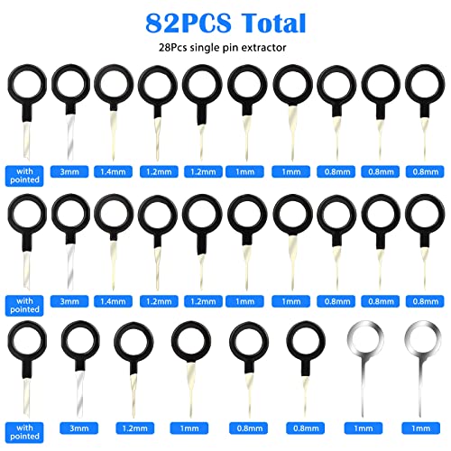 82 pezzi in 1: otterrai un estrattore a perno singolo 28 pezzi, un estrattore a doppio perno 30 pezzi, uno strumento per involucro 24 pezzi e una custodia protettiva. 82 pezzi in totale, diverse dimensioni per adattarsi alla maggior parte dei terminali, rendendo il tuo lavoro più conveniente.