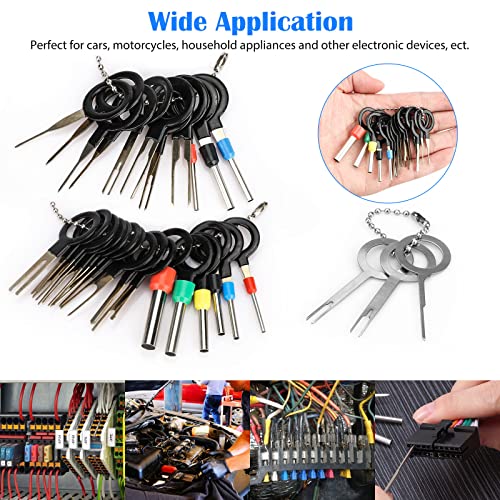 Ampia applicazione: il nostro kit di strumenti per la rimozione dei pin può essere ampiamente utilizzato per la maggior parte della rimozione dei terminali del connettore, dei terminali del cablaggio del selettore e della rimozione dei pin del connettore (come automobili, cablaggio ed elettrodomestici, cablaggio della coda di navigazione per la riparazione dell'autoradio, ecc.)