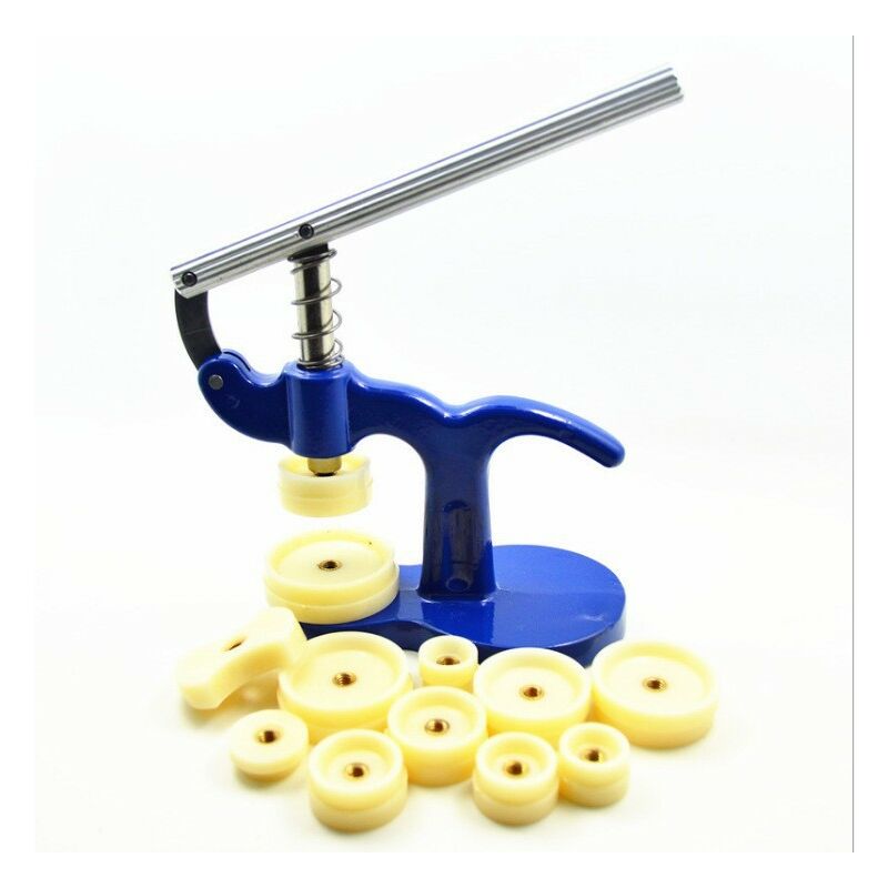 Kit stampa da orologiaio professionale per orologi con chiusura inferiore Viene fornito con un assortimento di 12 filiere per consentire 50/48, 46/44, 42/40, 38/36, 34/33, 32/31, 30/28, 26/24, 23/21, 20/18. Le matrici in ABS non si graffiano né si schiacciano Queste matrici si agganciano rapidamente e facilmente in modo da risparmiare tempo quando si utilizza la pressa. Eccellente per orologi a clip: le matrici si agganciano rapidamente e facilmente. Specifiche dell'oggetto: Questa è una cassa nuova di zecca. Queste esclusive fustelle in nylon a parete dritta non graffiano o danneggiano i cristalli Sono realizzate in metallo pressofuso per garantire resistenza. Viene fornito con un assortimento di 12 dadi per adattarsi a tutte le dimensioni di orologi. Il sistema snap-on consente alle fustelle di agganciarsi e sfilarsi rapidamente. La configurazione a faccia in giù significa che il riparatore vede il retro della custodia chiusa. Questo è uno dei nostri articoli più popolari e ti