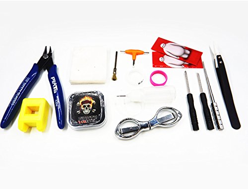 Include: kit di avvolgimento a bobina + pinze diagonali + pinzette in ceramica + forbici + filo di resistenza da 3,5 m + cotone + spazzola di pulizia + cacciavite a T + cacciavite a croce + cacciavite a testa piatta + custodia per batterie + anelli in silicone + bottiglia + forbici pieghevoli + borsa con cerniera