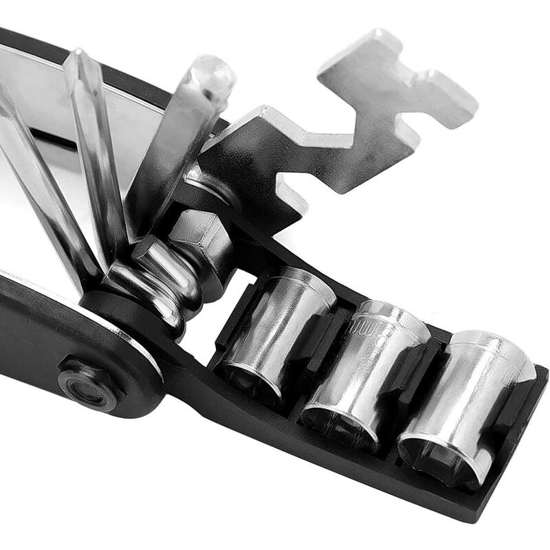 Utensile 16 in 1: chiave a brugola da 2/2,5/3/4/5/6 m, chiave inglese da 8/10/15 mm, una chiave per raggi del cerchione 14GE, asta di estensione del manicotto, cacciavite Phillips, un cacciavite, 8/ Chiave a bussola 9/10 mm, 18 pellicole senza colla, 1 lima, 1 presa esagonale Piccolo e leggero, portatile, facile da trasportare: il peso totale è di 300 grammi può contenere telefoni cellulari, leve per pneumatici, multi-strumenti, chiavi, contanti, gadget, ecc. Adatto per riparare la maggior parte delle biciclette: come mountain bike, bici da strada, bici pieghevoli, bici per bambini, bici normali o bici fisse, ecc. Durevole, pratico e compatto: misura solo 3,54 x1,69 x0,98 Realizzato in acciaio al carbonio e ABS di alta qualità, resistente, più resistente. Aiuta a risolvere la maggior parte dei problemi delle biciclette durante la guida all'aperto e gli accessori perfetti per la riparazione generale della bicicletta.< /li> Viene fornito con un piccolo regalo: un bros Indipendentemente