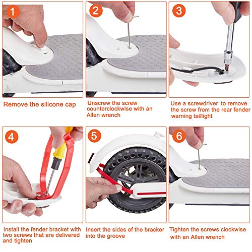 Facile da installare, senza viti aggiuntive è sufficiente svitare la vite della spia posteriore, fissare la staffa del parafango sul tuo scooter elettrico Xiaomi M365 con bulloni esistenti.