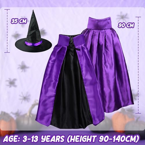 Atuoxing Halloween Costume da Strega Reversibile per Bambini, Mantello da Vampiro con Cappello per Ragazzi Ragazze, Mantello da Mago per Halloween Carnevale Cosplay (Viola)