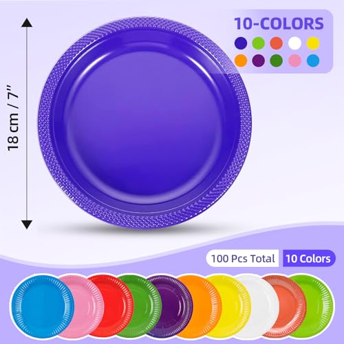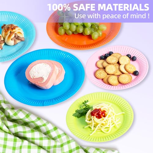 【Quantità e colore sufficienti】La confezione contiene 100 piatti di carta colorati in un totale di 10 colori diversi. Il diametro dei piatti da festa è di 18 centimetri (7 pollici) e possono essere utilizzati per progetti di bricolage o per servire il cibo.