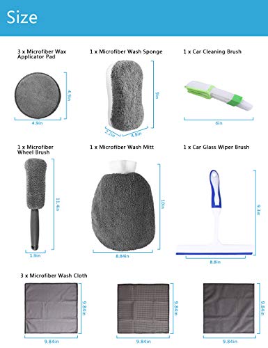 【 Kit Pulizia Auto Confezione da 11】Perfect Vehicle Wash Asciugamano in Vetro da 3 Pezzi, Pad per Cera Auto 3 Pezzi, Spazzola per Pneumatici per Auto, Lavavetri per Finestre, Spazzola per Pulizia Aria Condizionata, Guanti per Lavaggio Auto, Spugna per Lavaggio Auto Tutti Gli Strumenti Sono Confezionati in Una Busta Trasparente per Tenere Tutto in Ordine.