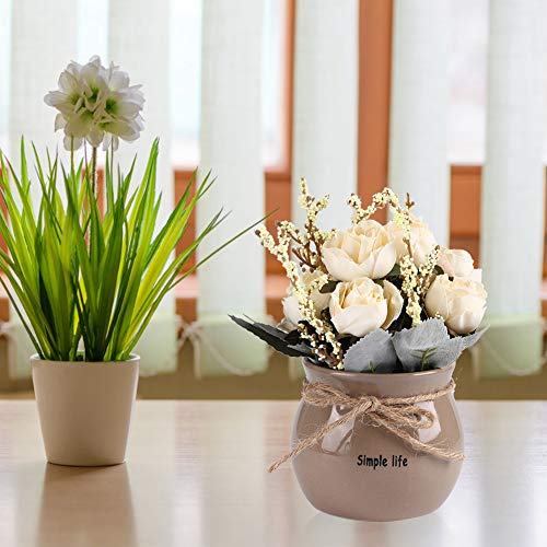 Atyhao Bouquet di fiori artificiali, vaso in ceramica con rose artificiali in seta rosa, decorazione per desktop in casa, decorazione, bianco