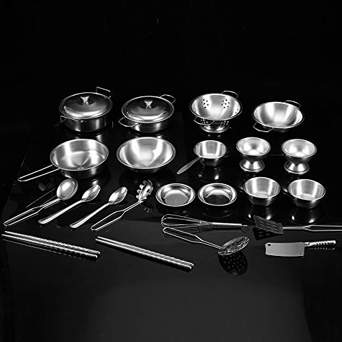 Atyhao Cucina Playset, Fai Finta di Giocare Giocattoli da Cucina con pentole in Acciaio Inossidabile Set di pentole e padelle Giocattoli da Cucina Utensili da Cucina Pan Toys Set for Kids(25 Pz)