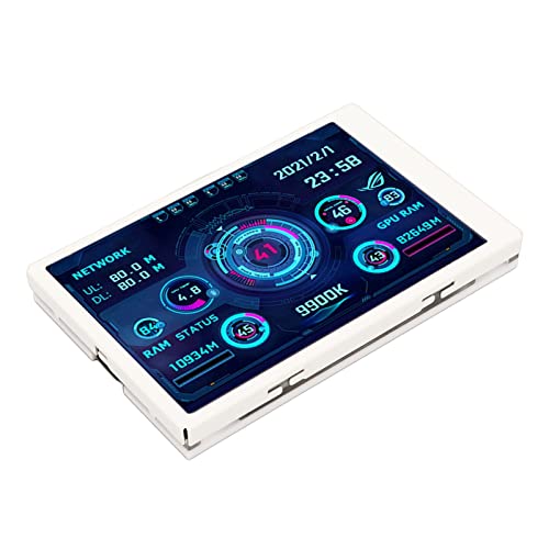 Atyhao Monitor della Temperatura del Computer Girevole Dimmerabile Spegnimento Automatico Misuratore della Temperatura del PC Display IPS da 3,5 Pollici USB C per Desktop (Set Bianco)
