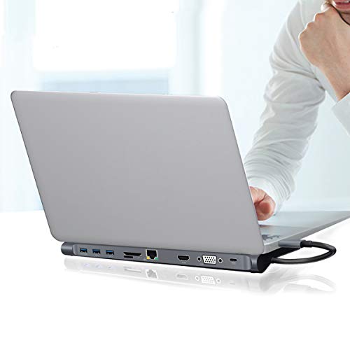 USB C Docking Station ha 10 porte per l'espansione immediata delle porte del laptop. Ci sono 2 pad antiscivolo nella parte inferiore per il computer portatile per essere ben accoppiato al corpo.