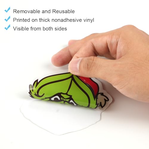 【QUANTITÀ SUFFICIENTE】Riceverai 8 adesivi statici, dimensioni soddisfacenti degli adesivi per finestre Grinch, vari modelli Grinch, un totale di 116 piccoli modelli, quantità sufficiente per soddisfare le tue diverse esigenze, design squisiti da aggiungere ai trattamenti delle finestre di casa per una sensazione vivace e sono ideali per decorare finestre, porte, vetrine, vetrine e pareti in vetro.