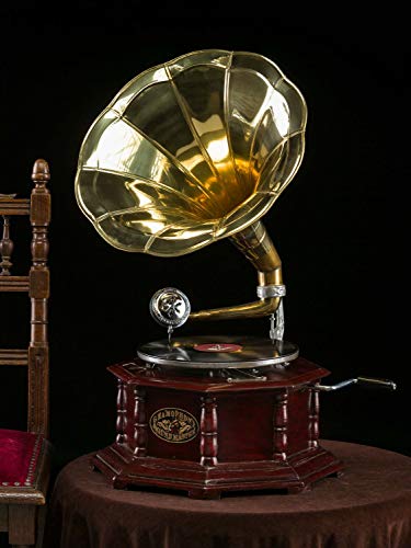 Aubaho Grammofono a Tromba con Piatto in ceralacca Stile Classico