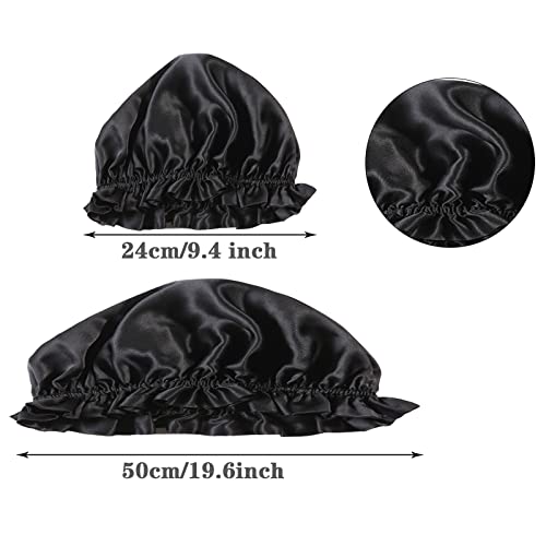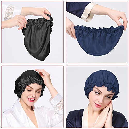Aubeifou 3 Pezzi Cappello per Dormire Berretto da Notte Seta in Raso,Cuffie Doccia Copricapo in Raso,Regolabile Cuffia Capelli Ricci per Donne e Ragazze,Nero, Rosso, Blu Navy.