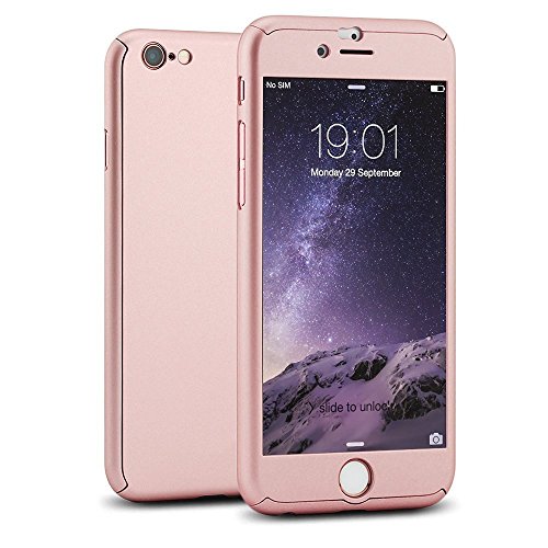 Auben iPhone 6/6S Caso, Full Body Ultra Sottile dura del PC Copertina Caso + Proteggi schermo Vetro temperato 3 in 1 Design Copertura frontale & Fondello & Film di vetro Lusso Protezione Completa (iPhone 6/6S, Oro rosa)