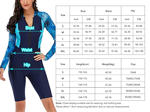 AUBIG Muta Intera da Donna Mute da Sub Siamesi con Zip Frontale a Maniche Lunghe Costume da Bagno Sottile con Motivo Floreale Estivo Alla Moda Tuta Surf Boxer con Protezione Solare 04 Manica lunga L
