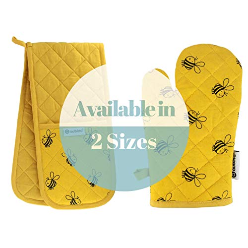 Guanto da forno doppio di lusso con elegante stampa a forma di ape bombata gialla e nero.
