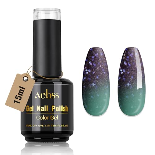 AUBSS Smalto Semipermanente per Unghie 15ML Smalto Termico per Unghie in Gel Cambia Colore con Temperatura Porpora e Verde Glitter Smalti Semipermanente UV LED DIY Casa Manicure Regalo per Donne