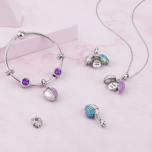 Auccu Ciondoli Pandora Per Bracciali, Amore Ciondolo a Forma di Cuore in 925 Argento Sterling Bead Charm da Donna con Scatola di Gioielli per San Valentino Regalo di Compleanno
