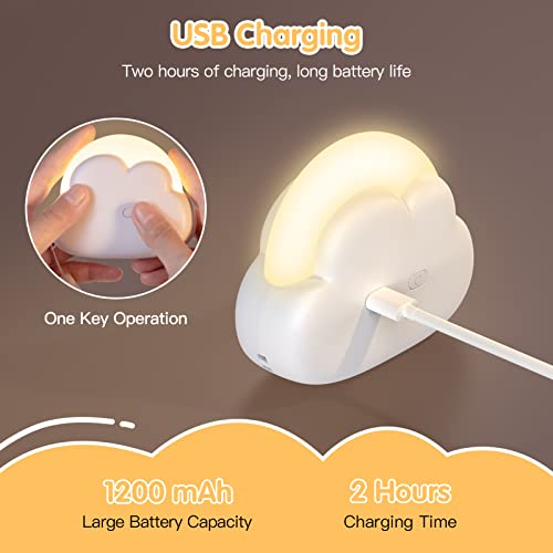 Audero Luce Notturna Bambini Neonati, 1 PCS Bianca LED Lampada da Comodino Notte Luci Notturne a Nuvola Luci 4 Livelli e Ricaricabile da Cavo USB con un Cinturino Portatile in Silicone