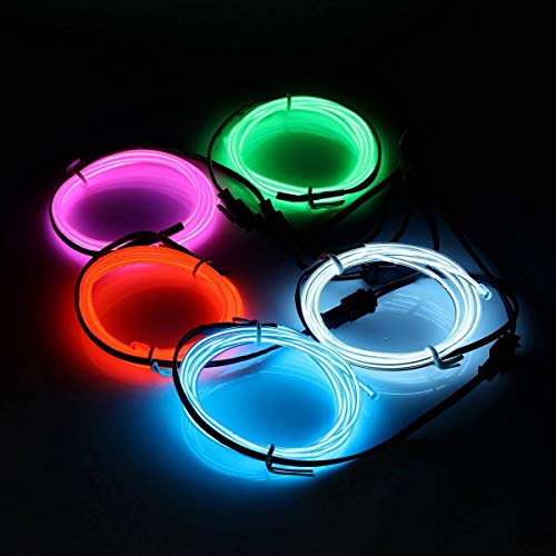 AUDEW 1M x 5 diversi colori Neon Wire EL ghirlanda cavo con brillante Elettroluminescente Mucchio Per Box sera, partito, Matrimonio, Automobile / Ditta (Bianco + Rosa + Rosso + Verde + Blu)