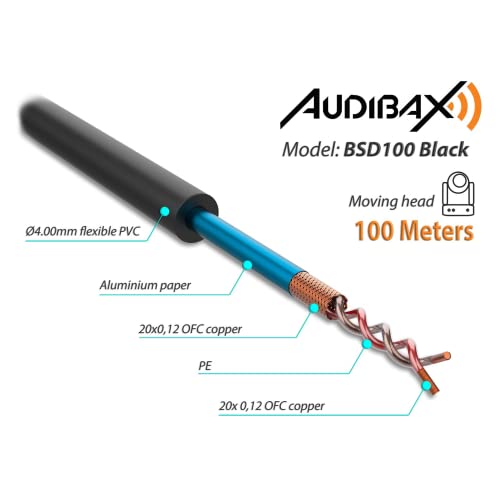 GRANDE QUALITÀ E AFFIDABILITÀ: Questa bobina con cavo della serie Audibax Silver è un cavo DMX con cui puoi soddisfare tutte le tue esigenze di cablaggio di rete per le connessioni DMX. Questa bobina ha un cavo lungo 100 metri e con un diametro di 4 mm.