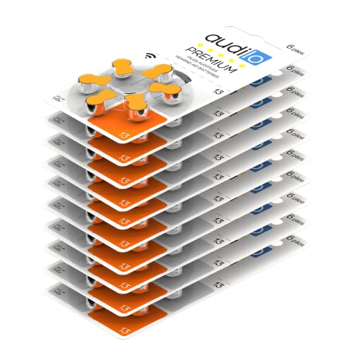 Audilo - Batterie Premium per Apparecchi Acustici 13 (PR48) - Senza mercurio/Tecnologia zinco aria / 1.45 Volt - Pacco contenente 60 batterie (10 blister da 6 pile) - Modello 13 Arancione