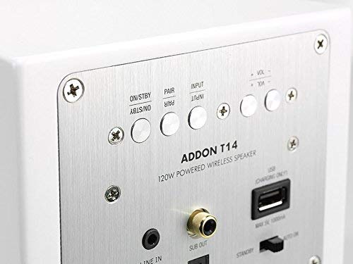 Audio Pro Addon T14 Altoparlanti da scaffale con Bluetooth (1 coppia con telecomando in alluminio, 2 x 30W) Bianco