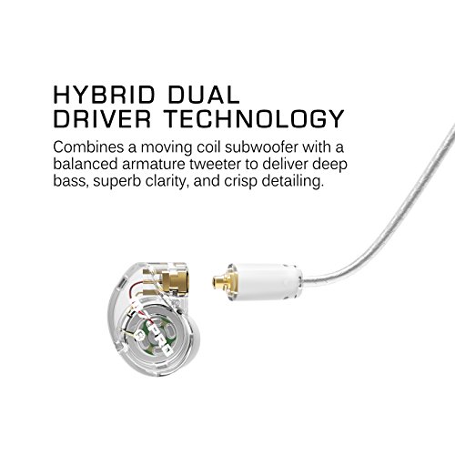MEE Audio M7 PRO Clear Universal Fit Hybrid Dual Driver Musician'S Auricolari con cavo rimovibile, trasparente