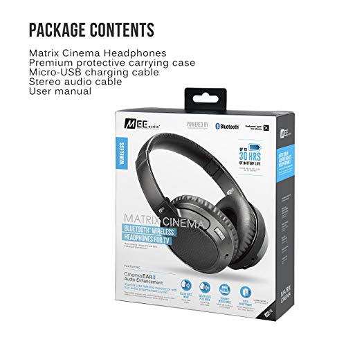 MEE audio - Matrix Cinema, cuffie Bluetooth, aptX a bassa latenza, lunga durata della batteria, cuffie, custodia protettiva per il trasporto - inclusa