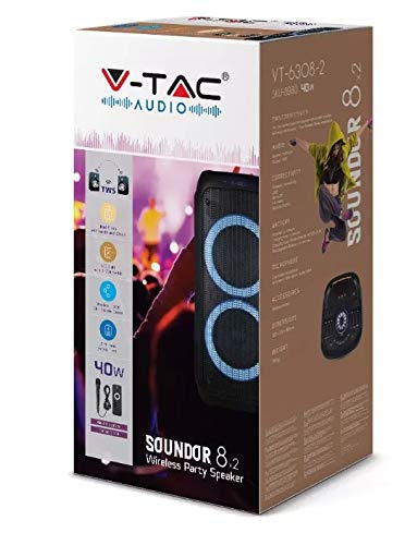 AUDIO SOUNDOR 8X2 CASSA ATTIVA 40W CON BLUETOOTH KARAOKE LED RGB TELECOMANDO E MICROFONO VT-6308-2 - SKU 8980