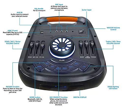 Altoparlante ricaricabile - Doppio 8 pollici con maniglia e ruote