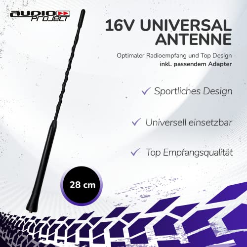 Audioproject A103 Corto Asta Antenna 28 cm Tetto Antenna Rod 16 V M5 M6 Filo Am Fm / VW Golf 4 5 6 7 Passat Polo Touran Opel Astra (Compatibilità con Destrorso Drive Veicoli Non Garantito)