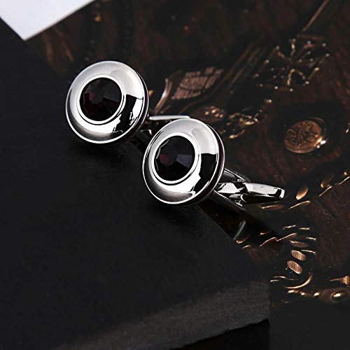 AueDsa Gemelli Acciaio Inossidabile Uomo Argento Viola Gemelli Camicia Rotonda CZ Viola