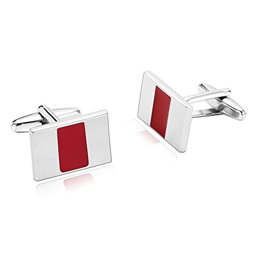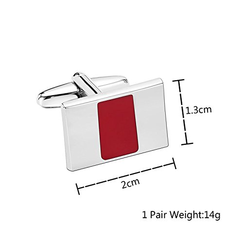 AueDsa Gemelli Camicia Uomo Acciaio Inossidabile Rosso Argento Gioielli Rettangolo
