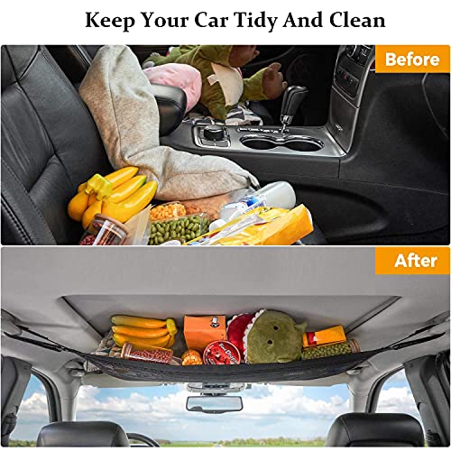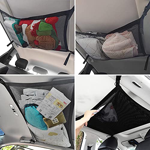 Risparmio di Spazio: La custodia per coperte per auto a doppio strato può contenere oggetti leggeri di grandi dimensioni come vestiti, cuscini, coperte, giocattoli di peluche, guarnizioni per cerniere, ecc. E il design con coulisse della tasca in rete, stringe saldamente il cordoncino dopo aver indossato gli oggetti oggetti cadano, non toccherà la testa dei passeggeri. La nostra borsa a rete cargo per il soffitto farà risparmiare notevolmente l'interno della tua auto.