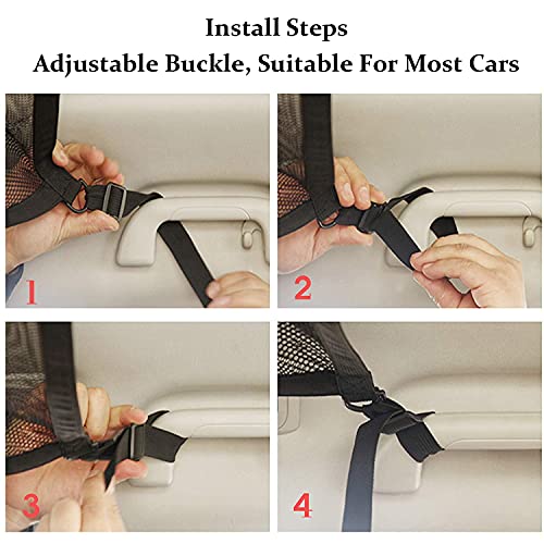 Facile da Installare: Le 4 fibbie di fissaggio della borsa a rete per il carico del soffitto dell'auto possono essere facilmente fissate al binario del tetto per fissare l'organizzatore di stoccaggio dell'auto. Tutto quello che devi fare è tenere le fibbie di fissaggio e stringere la cinghia. Borsa stabile e sicura per riporre la coperta dell'auto, occupa meno spazio. L'installazione è molto semplice. Le tasche portaoggetti sul tetto possono essere regolate in base alla larghezza del tetto