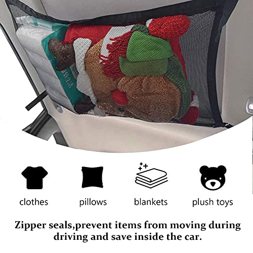Borsa a Doppia Rete Resistente: La borsa a rete per la custodia dell'auto è realizzata in materiale a rete di poliestere di alta qualità, resistente, non facile da strappare. Il supporto per rete in rete elastica può riporre facilmente vestiti, cuscini, coperte e altri oggetti di grandi dimensioni, risparmiare spazio, facile da trasportare, apertura con cerniera, proteggere gli oggetti da fuoriuscite, evitare che gli oggetti scivolino durante la guida.