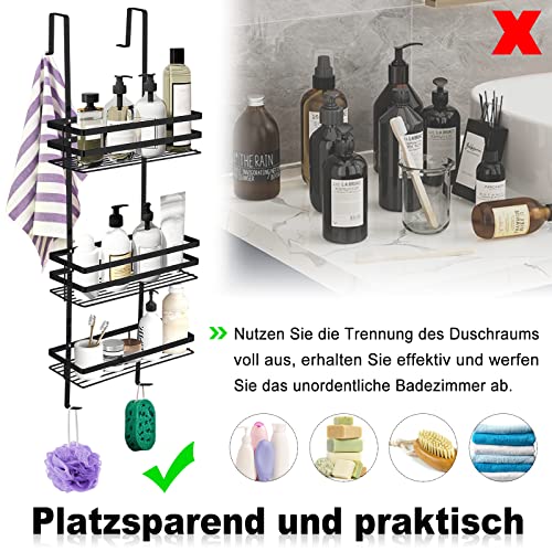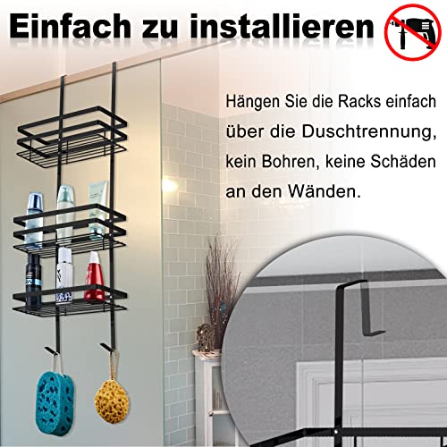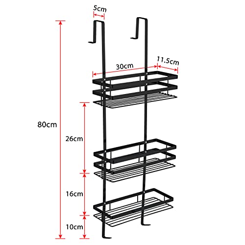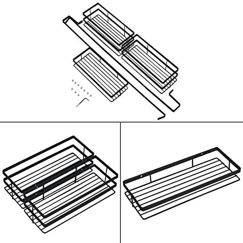 Aufun Mensola Doccia Mensole Bagno Mensola Doccia Cromata Nessuna Perforazione 3 Ripiani 800x300x115mm - Nero