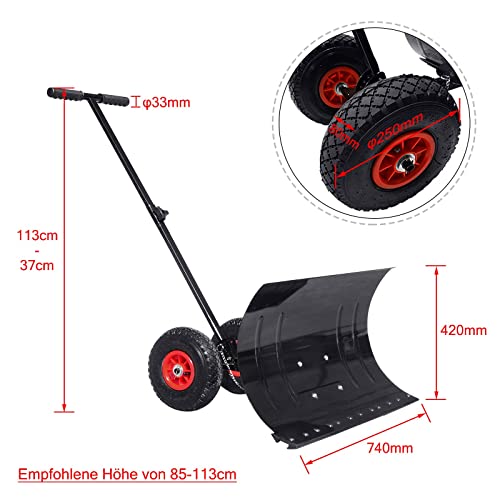 Aufun Pala da neve con ruote e 5 angoli regolabili in altezza, Lama da neve per giardino e marciapiede, Pala per Spazzaneve Manuale in metallo larghezza di lavoro 75 cm, altezza 42 cm