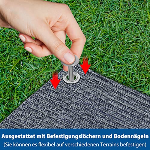 MATERIALE E PESO: Realizzato in HDPE (280 g/㎡), il robusto tappeto per tende da sole è durevole, antiscivolo e resistente all'umidità, all'usura e allo sporco;