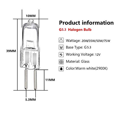 AUFWH 10 pz G5.3 12V 20W / 35W / 50W / 75W Lampadine alogene Lampadine Long Life Capsula Lampade calde Bianco Cancella Lampadine per interni Lampadine-G5.3-12V-50W._10 PEZZI