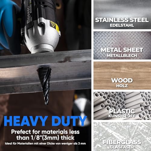 AugTouf Punta da trapano M35, 4-12 mm, pronta per l'impatto a quattro taglie, gambo esagonale da 1/4 "Unibit per metallo, legno, plastica, foratura multipla
