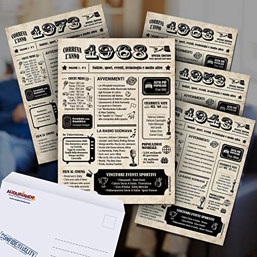 In questo biglietto auguri compleanno 50 anni stile vintage All'interno del giornale auguri troverai le notizie più importanti dell'anno, eventi sportivi, film e serie televisive, celebrità nate nello stesso anno e altre curiosità. frasi e commenti avvenimenti memorabili negli anni 1973 lo spazio dedicato alle personalizzazione del nome del festeggiato dediche personali lo spazio dedicato alle firme.