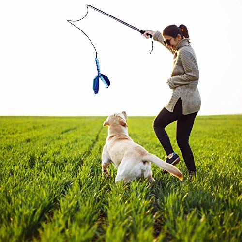 Auidy_6TXD Flirt Pole Cani, Giocattoli interattivi per cani retrattile con 2 giocattoli da masticare corda per masticare, allenamento
