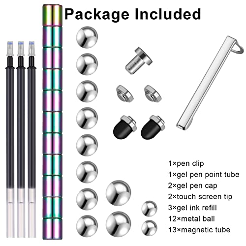 Penna a sfera multiaccessori: il set di penne magnetiche dispone di 13 sezioni ad anello magnetico + 2 ricariche + 2 punte capacitive + 12 piccole sfere in acciaio + 2 terminali magnetici. Tutto è riposto in una bella scatola per una facile conservazione e organizzazione.