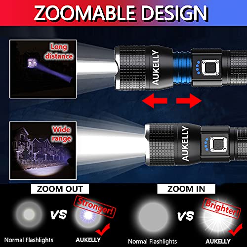 Aukelly LED Torcia USB Ricaricabile Torcia XHP50 Elettriche Portatili, 5000 Lumen Torcia Led Alta Potenza, Militare Potente Tattica Torcia, 5 modalità, Impermeabile, Batterie Inclusa