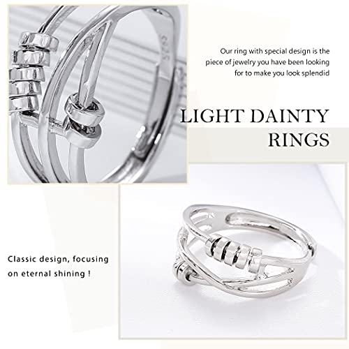 Aukmla Anelli di ansia Anello di perline d'argento Anelli di pace di agitazione Antistress Anello di filatura Anelli di barretta regolabili aperti per donne e ragazze