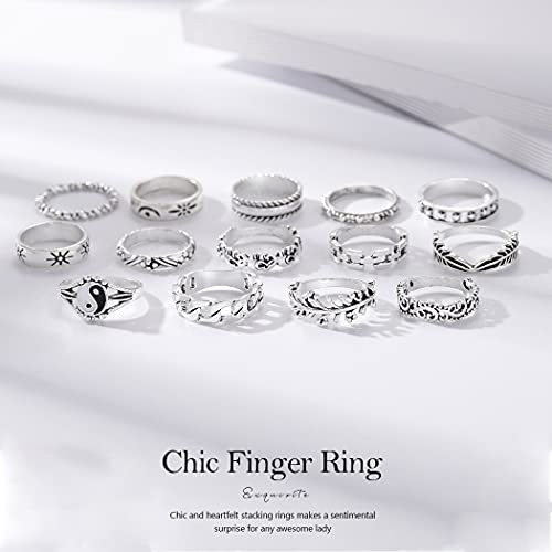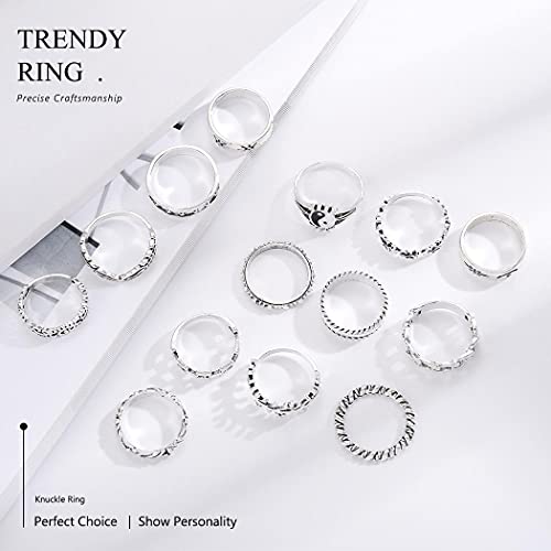 Aukmla - Set di anelli da dito impilabili con elefante, in argento, misura media, per donne e ragazze, 14 pezzi