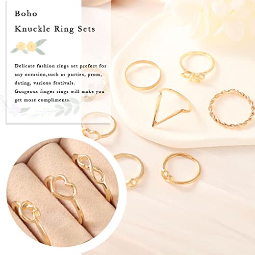 Aukmla Set di anelli a forma di cuore Boho Knuckle in oro Kot impilabili anelli Infinity Midi Size Joint Knuckle Ring Set per donne e ragazze, 9 pezzi
